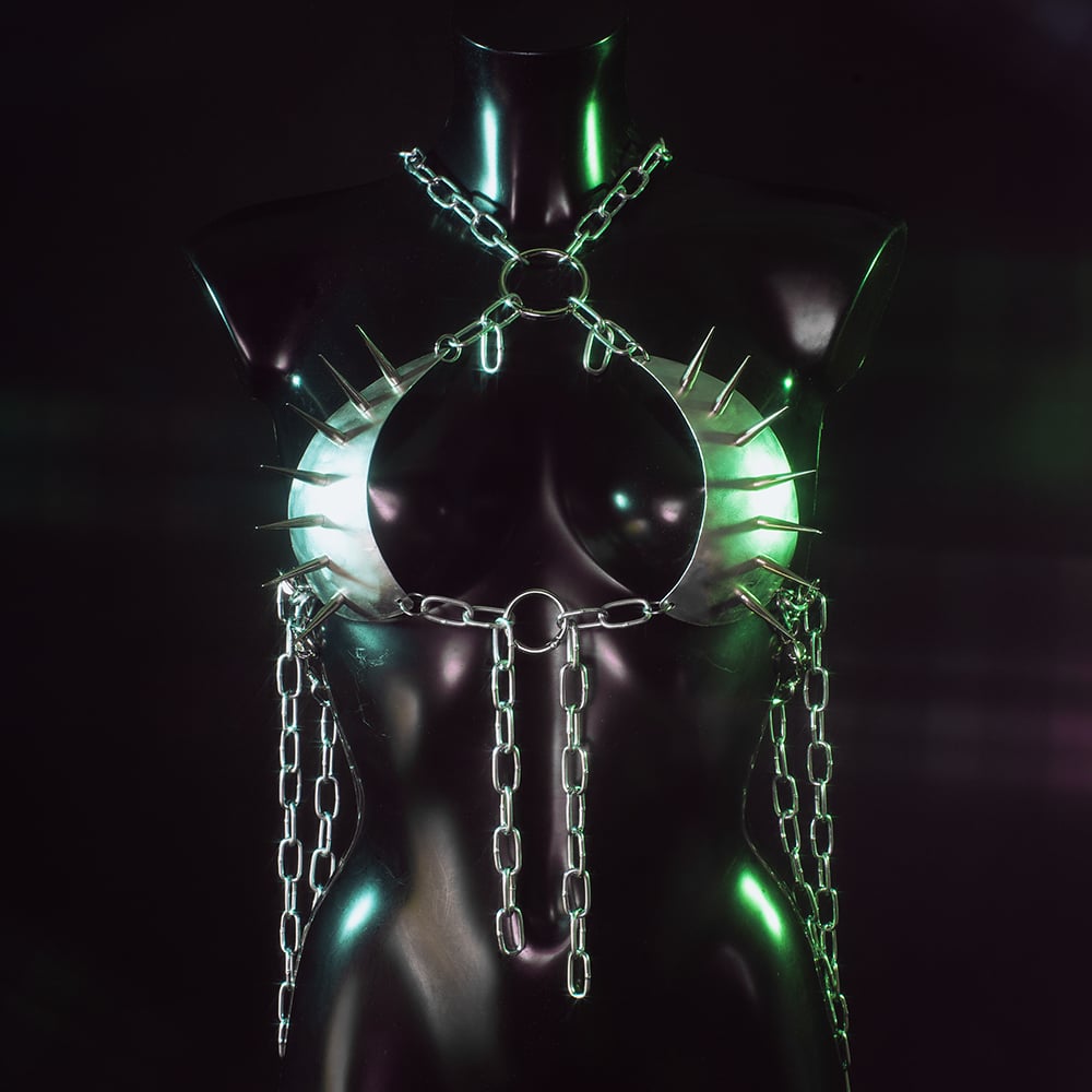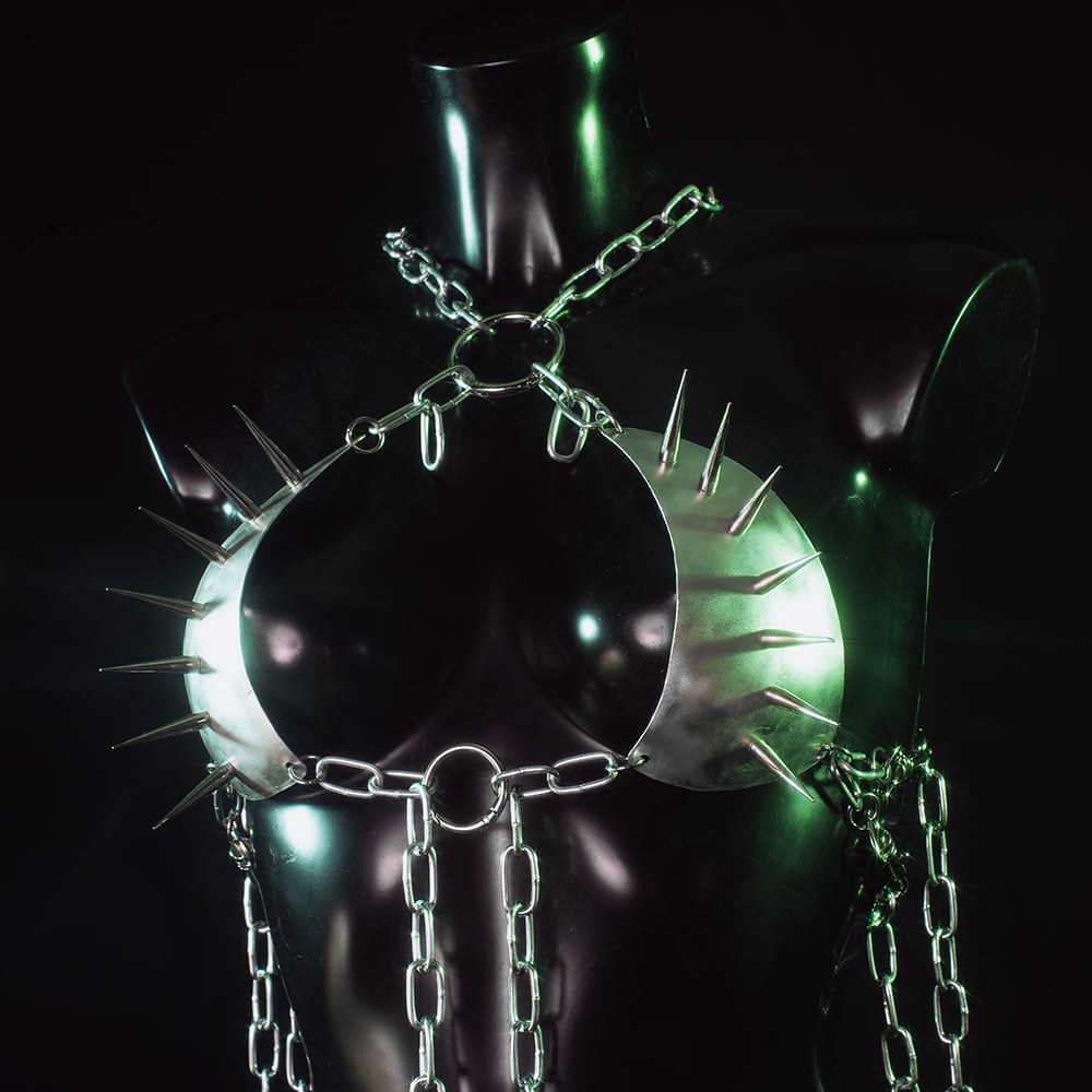 Handmade hammered metal* and stainless-steel chain bra with metal spikes to unleash your medieval warrior woman, gothic goddess, or heavy metal heroine Dungeon Honey style...
